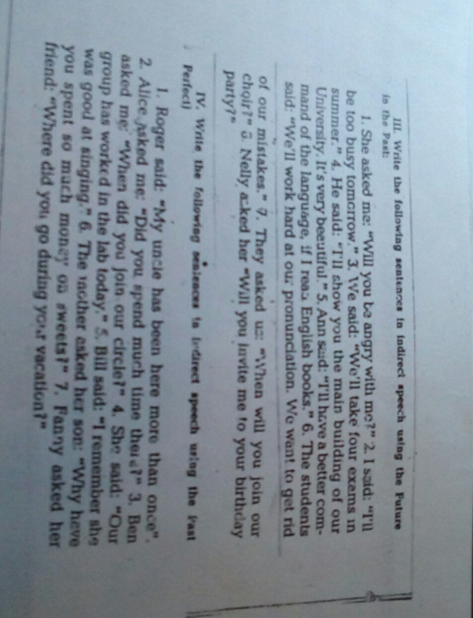 везде времена просто на одно время назад меняешь и меняешь порядок слов с вопроса на утверждение вот и все