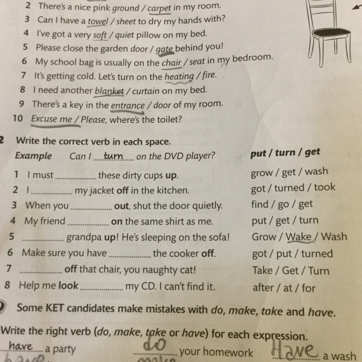 Глаголы ко второму заданию следующие: 1 - wash 2 - took 3 - go 4 - put 5 - wake 6 - turned 7 - get 8 - after