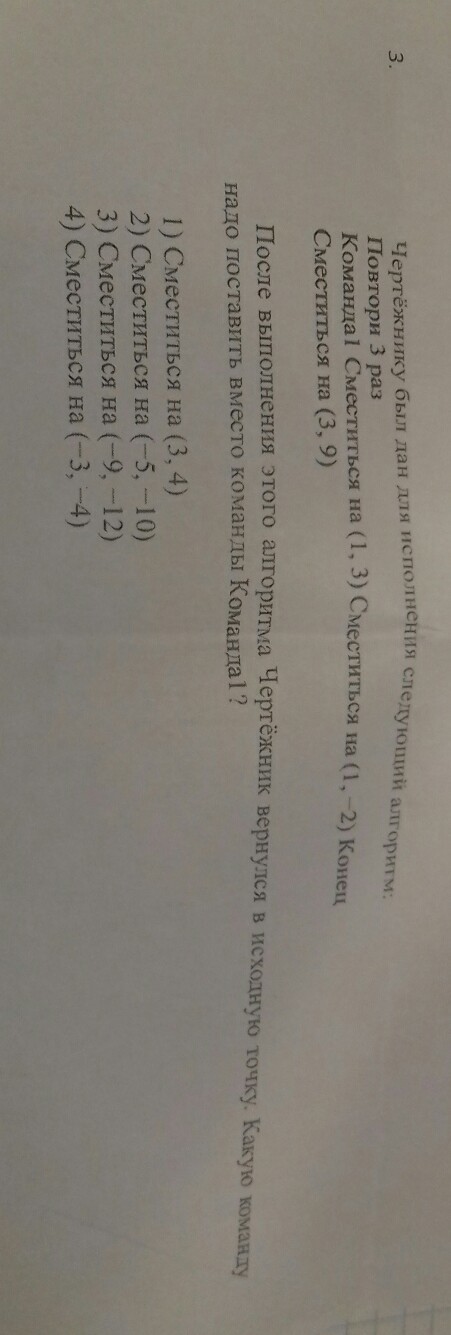 чтобы чертежник вернулся в исходную точку необходимо переместить его на (-9;-12)