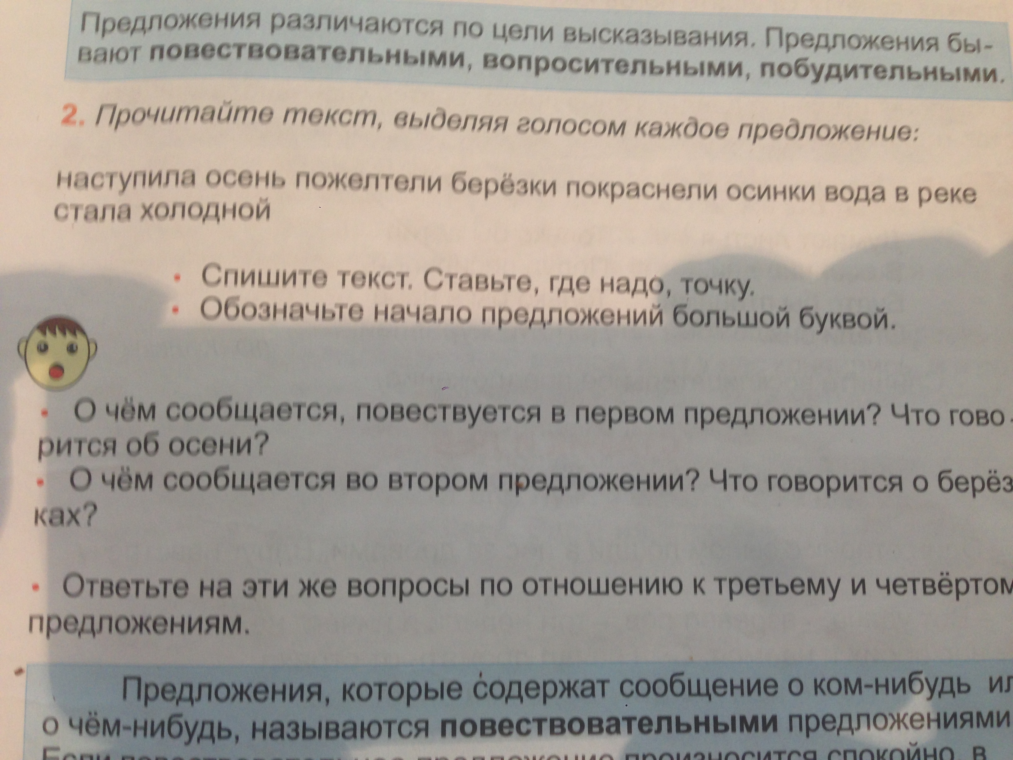 Наступила осень . Пожелаем березки . Покраснели осинки . Вода в реке стала холодней