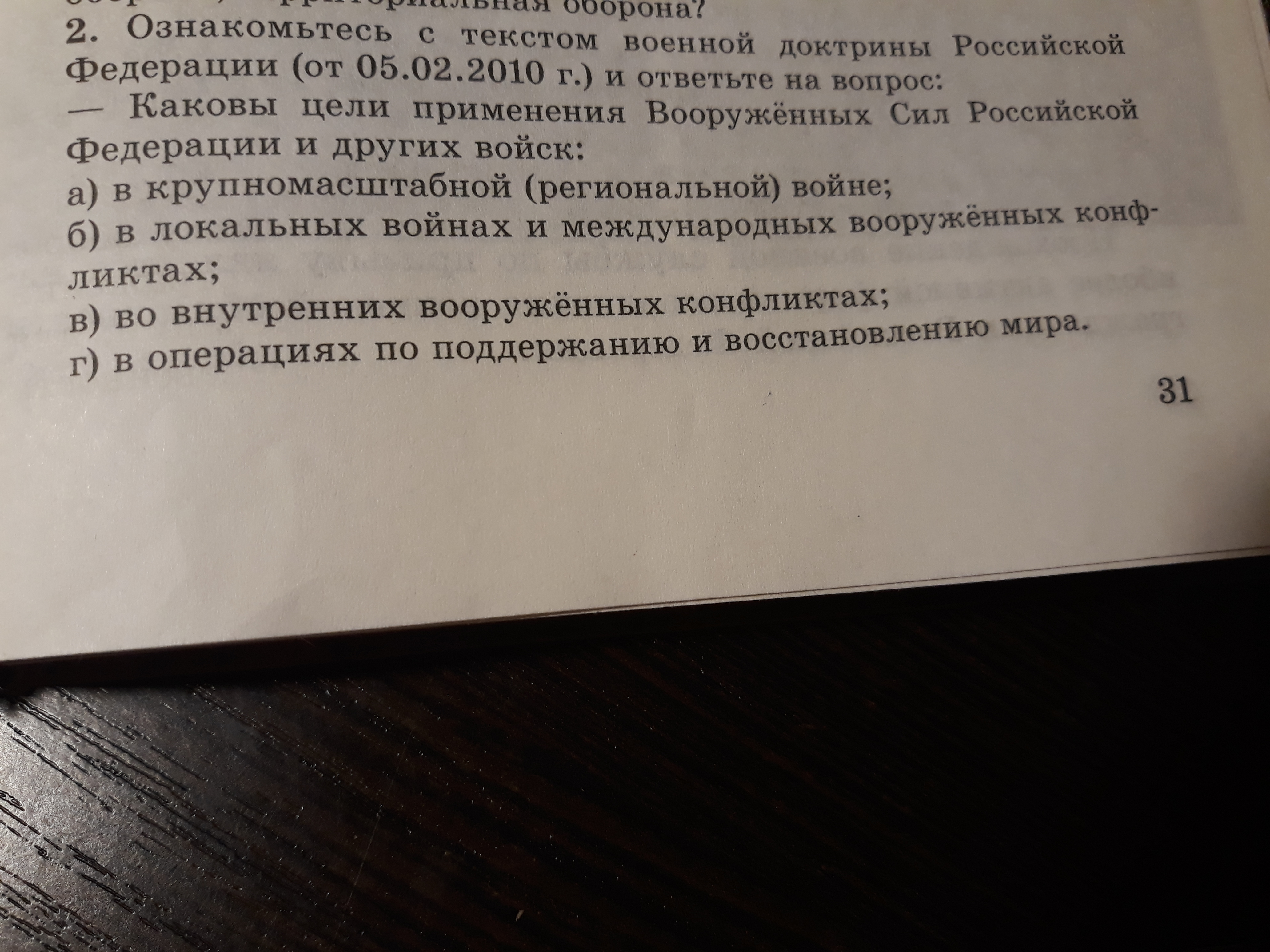 Походят все варианты, но вариант в, не совсем точен. ВС могут быть использованы во внутренних конфликтах, но если того требует ситуация .