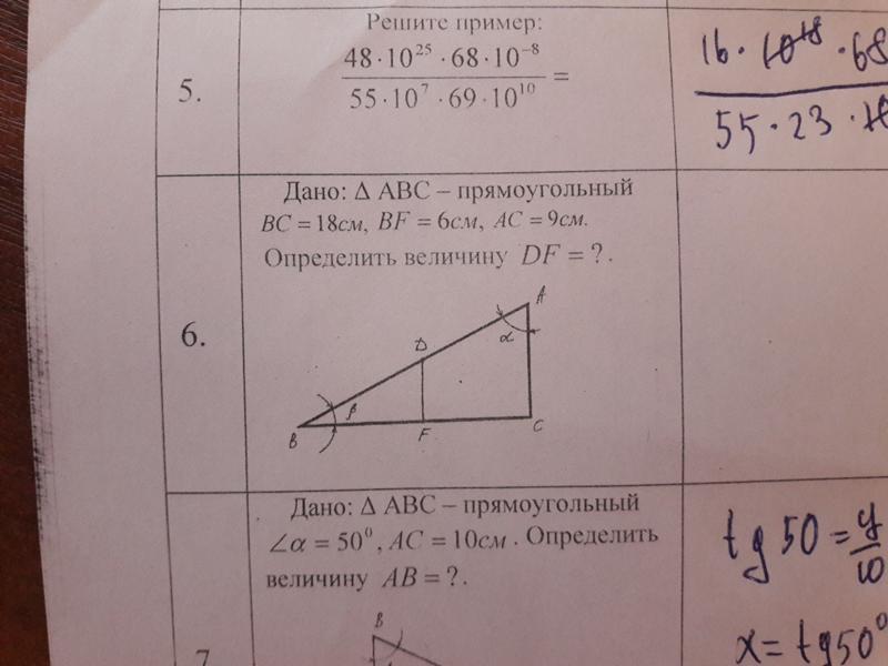 Рассмотрим треугольники АВС и ВDF и в них имеем: