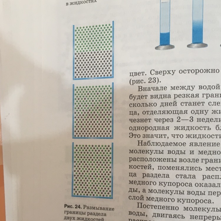 Пользуясь рисунком 24, объясните процесс протекания диффузии в жидкостях
