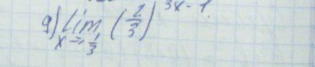 limlimits _{x to frac{1}{3}} Big ( frac{2}{3}Big )^{3x-1} =Big ( frac{2}{3}Big )^{3cdot frac{1}{3}-1}=Big ( frac{2}{3}Big )^0=1