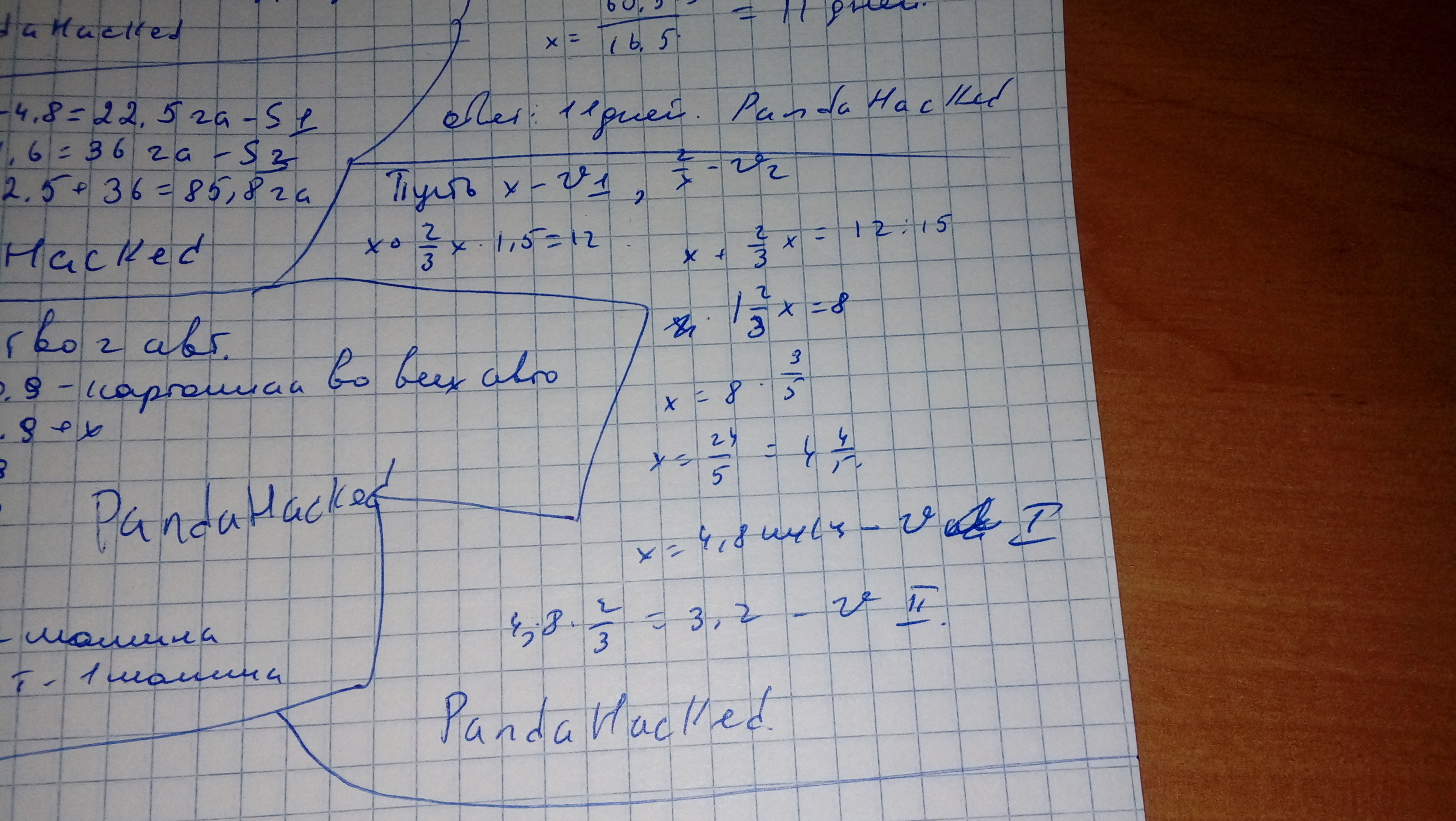 Пусть х - скорость первого мальчика, тогда скорость второго=⅔х Известно, что оба они шли 1,5 часа, отсюда находим путь. Путь первого = 1,5*х Путь второго = 1,5 * ⅔х = х Составим уравнение 1,5х+х=122,5х=12х=4,8 км/ч скорость первого, тогда скорость второго = ⅔ * 4,8 = 3,2 км/ч