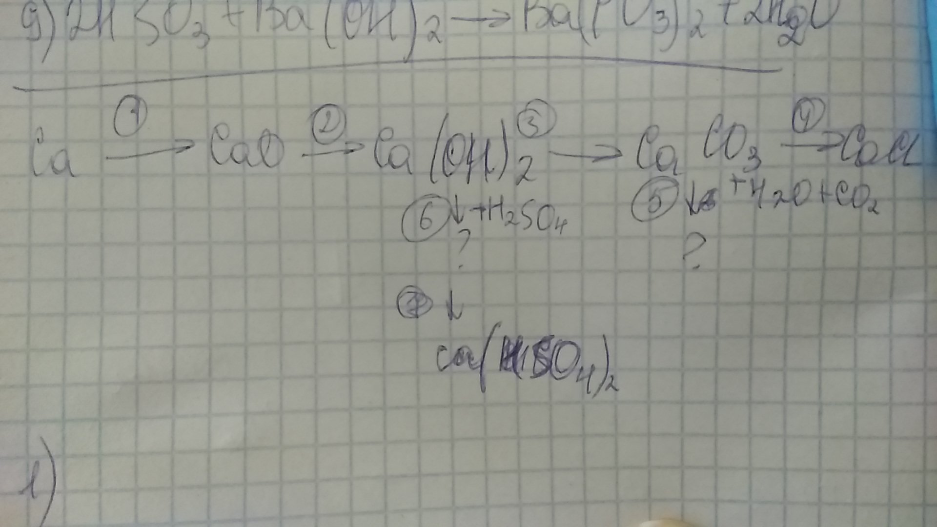 3) Ca(OH)2 + CO2 = CaCO3 + H2O