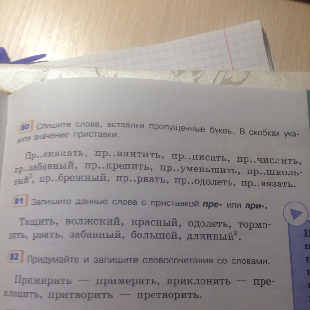 Спишите из упражнения 80, вставшие пропущенные буквы, обязательно напишите значение приставок.
