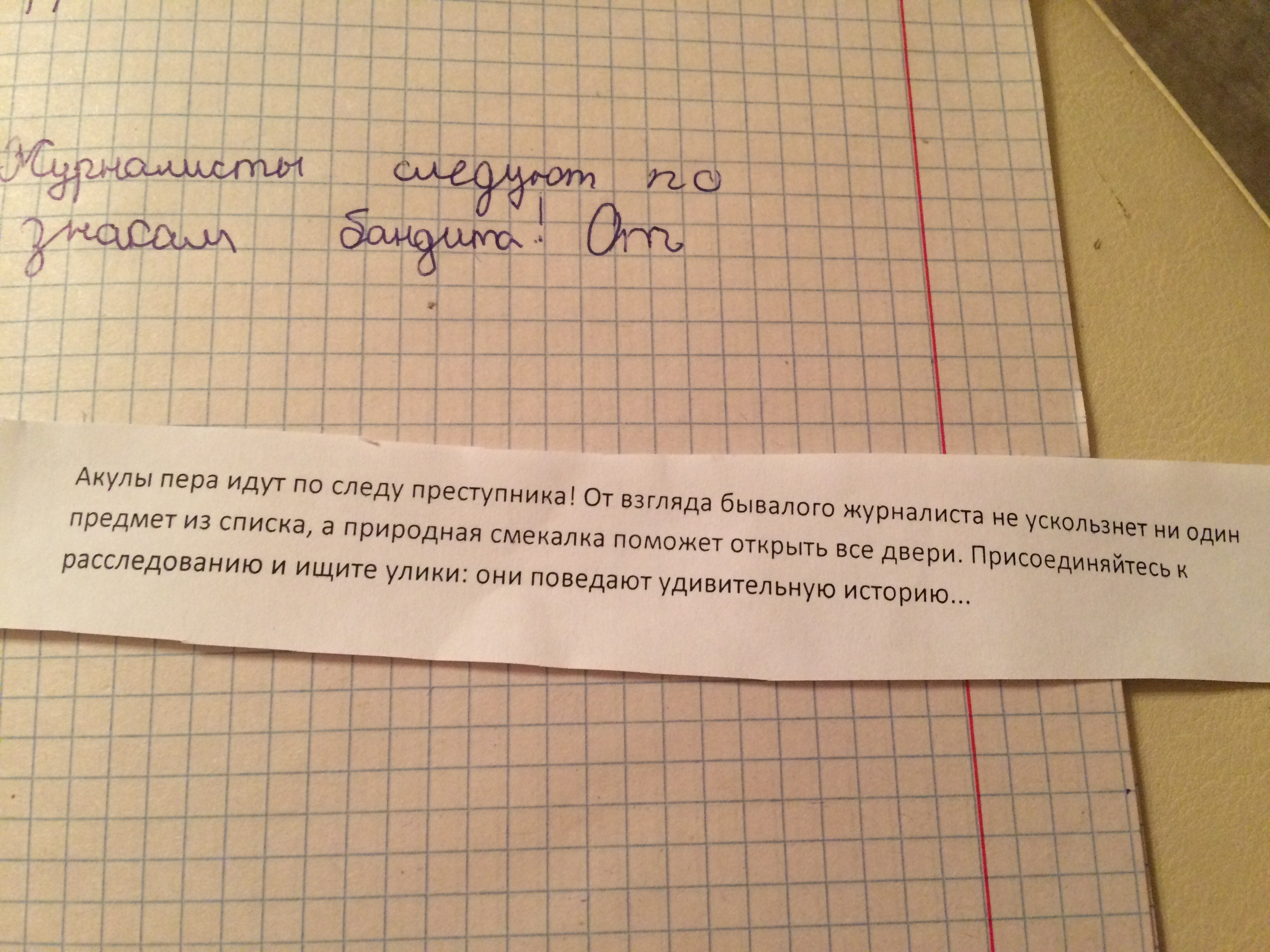 (Начну я также как и ты...) Журналисты следуют по знакам бандита. От взора опытного репортёра (газетчика) не укроется ни единый объект из перечня, а врождённая смышлёность подсобит отворить все выходы (и входы). Подключайтесь к следствию и разыскивайте доказательства: они расскажут интересные вещи...