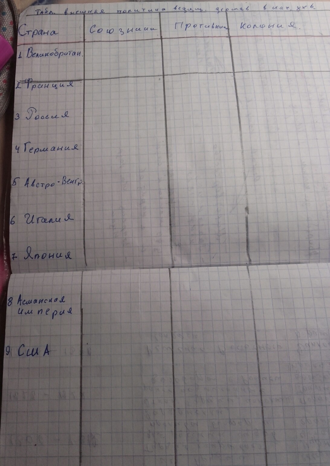 помогите пожалуйста , очень срочно!!!))))табл.внешняя политика ведущих держав 20 века