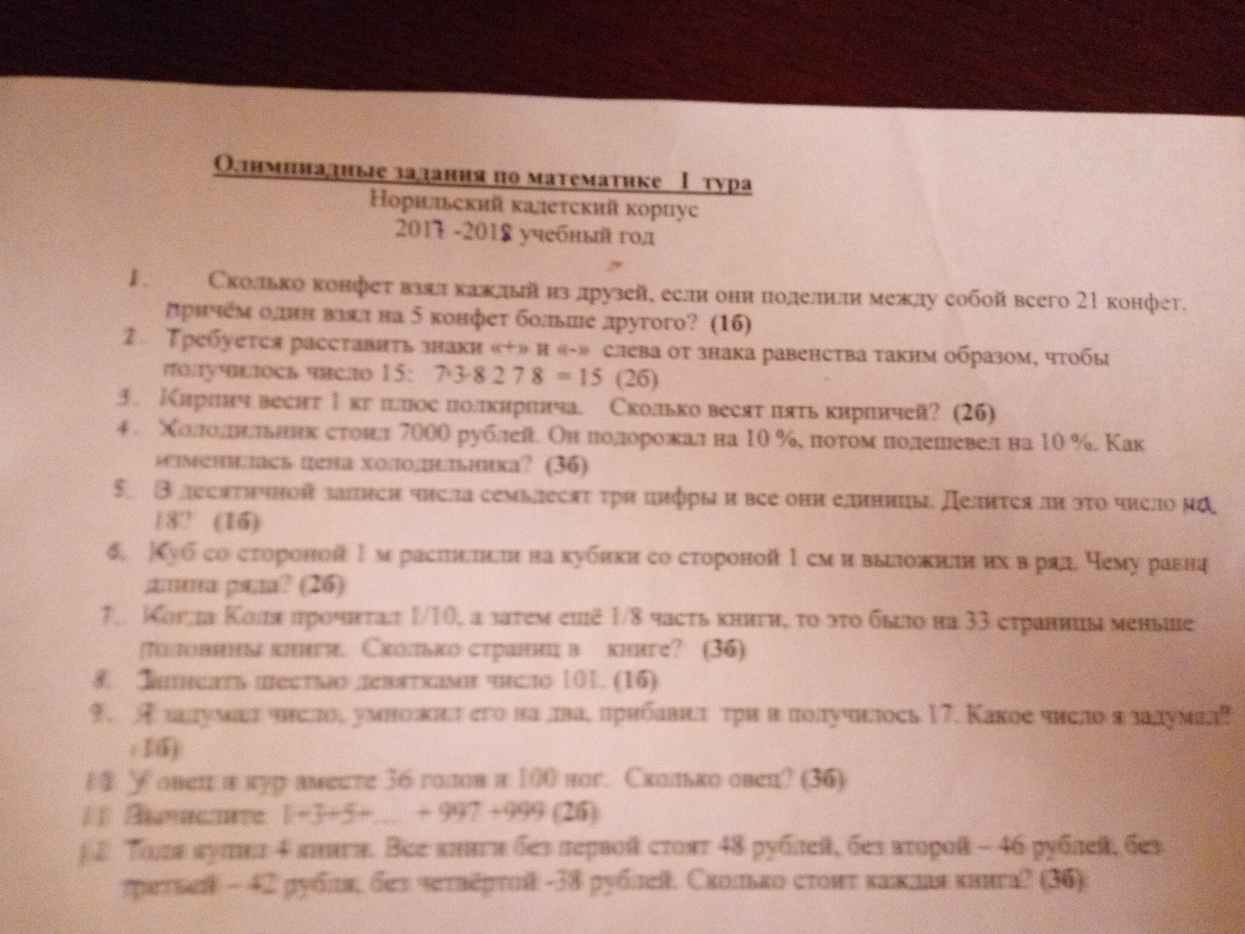 Полкирпича весит 1 кг., целый кирпич - 2 кг. 5 кирпичей - 10 кг - ОТВЕТ