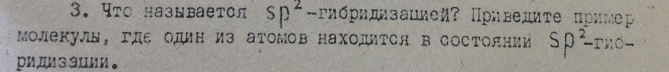 Sp2-Гибридизация характерна для атомов С, N, O и др. с двойной связью (sp2-гибридизация у атома углерода):H2C=CH2
