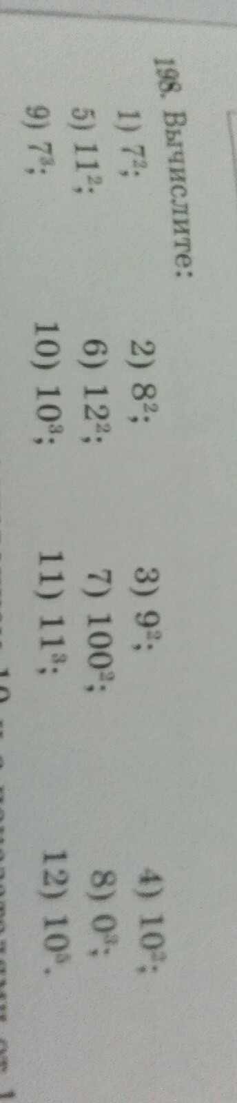 9) 7³ = 343 10) 10³ = 1 000 11) 11³ = 1 331 12) 10⁵ = 100 000