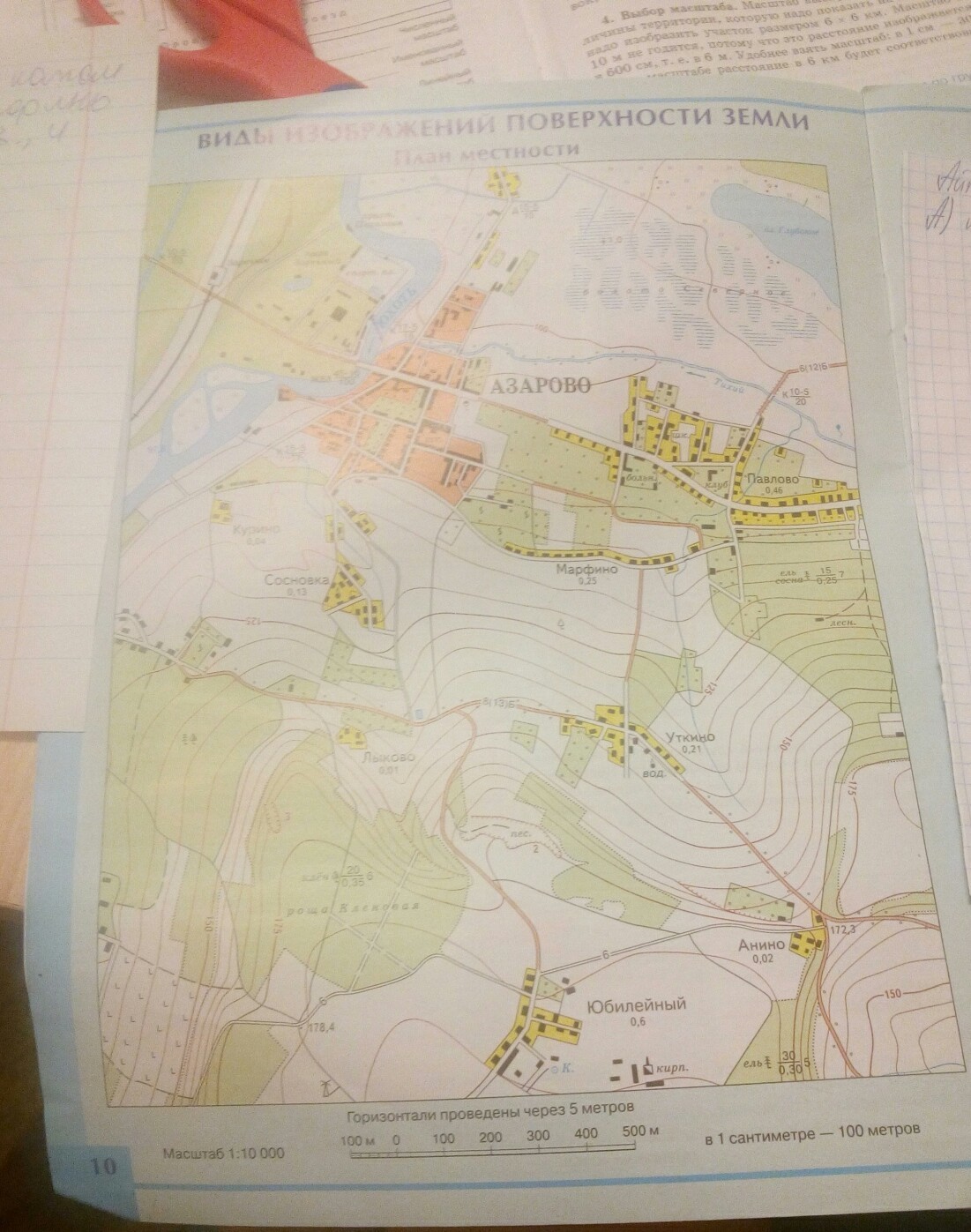 По плану местности (атласе стр.10) определите в каком направлении от деревни Марфино находится следующие объекты,и определите их азимуты. а)Мост через р.Юхоть.