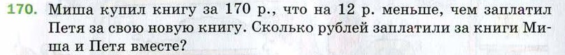 1)170+12=182(р) стоит новая книга Пети