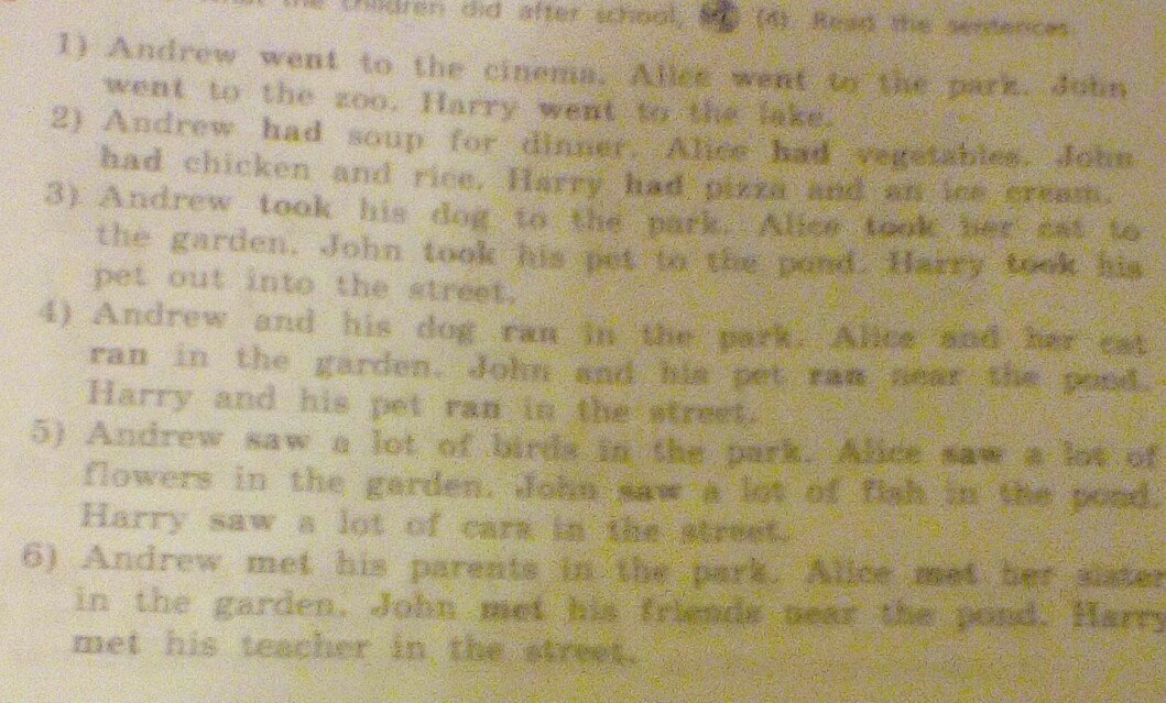 Пошел ли Андрей в кино? Пошла ли Алиса в парк? Пошел ли Джон в зоопарк?