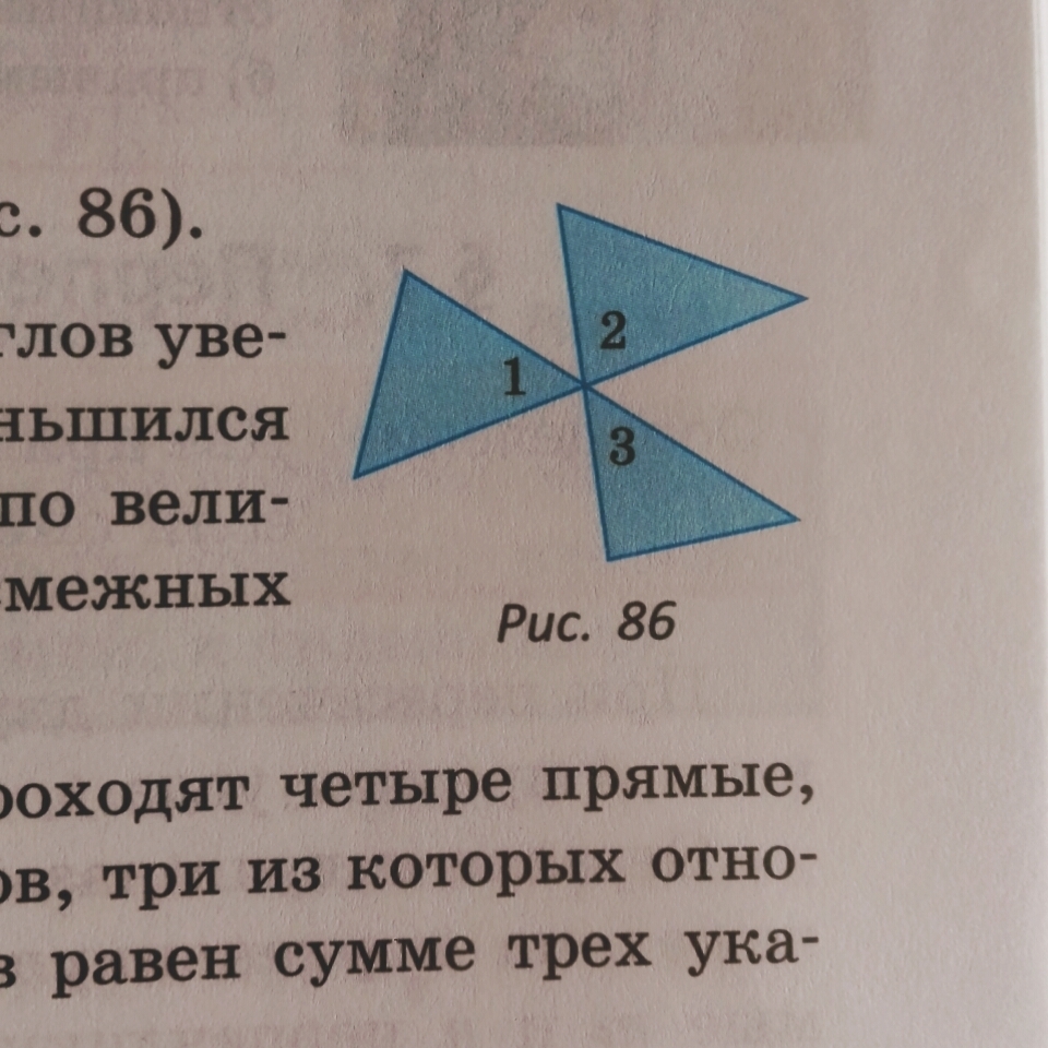 Найдите сумму углов 1,2 и 3 (рис.86)