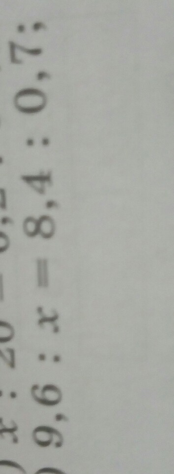 x = 9.6 * 0.7 : 8.4 = 0.8 (по свойству пропорции перемножаем крайние члены пропорции и делим на средний член пропорции)