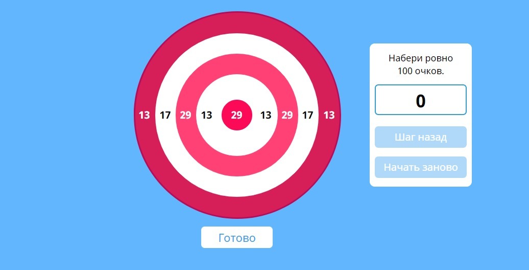 В какие надо стрельнуть числа, чтобы получилось РОВНО 100 , стрелять можно в любое число несколько раз...
