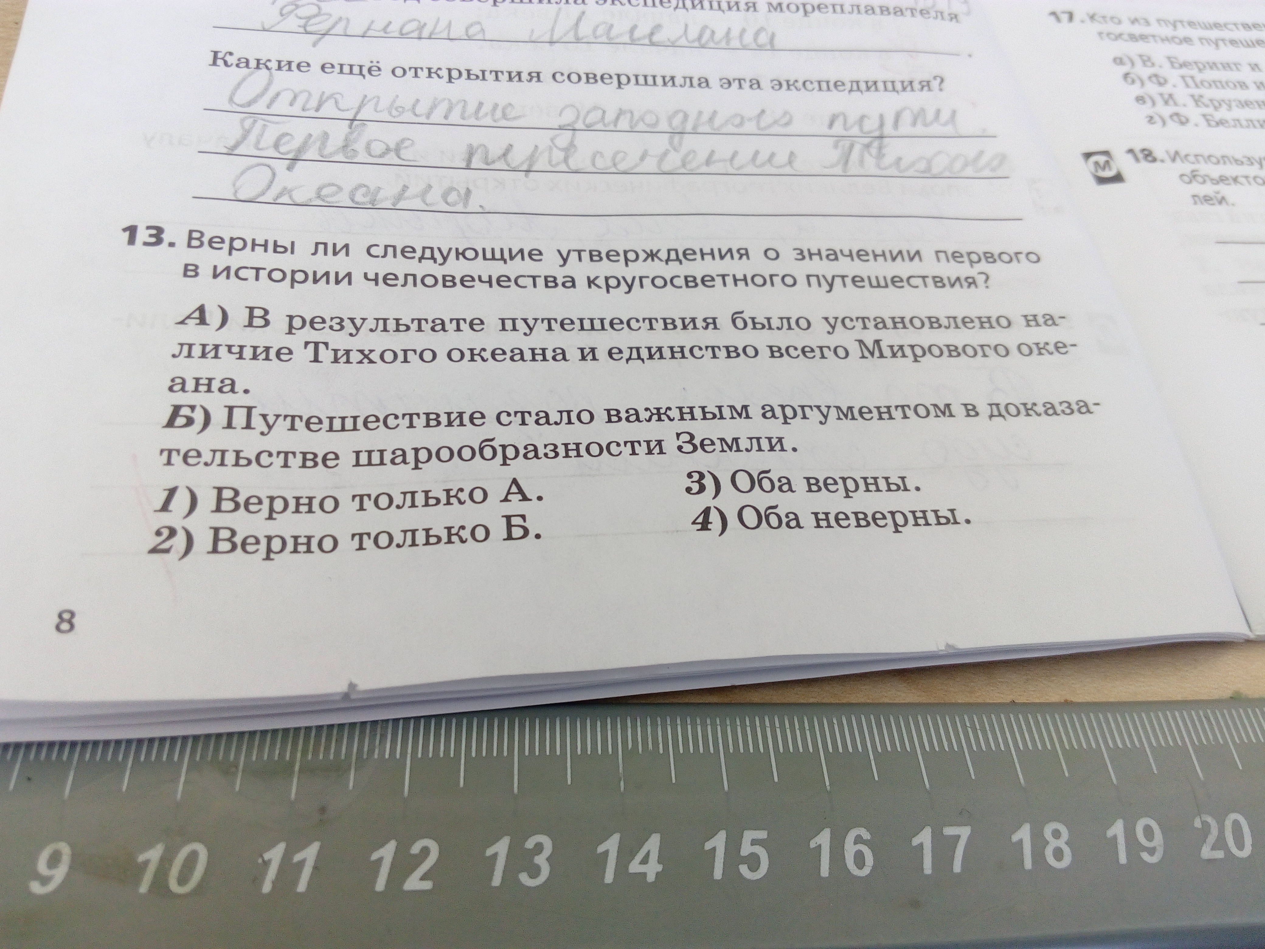 Верны ли следующие утверждения о значении первого в истории человечества кугосветного путишествия