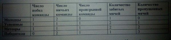 Перед тобой таблица школьных соревнований по хоккею между четырьмя командами старших классов (каждая команда сыграла с другой один раз). На основе этой таблицы построй новую подобную таблицу, в которой бы отражался счёт каждой команды во всех сыгранных матчах