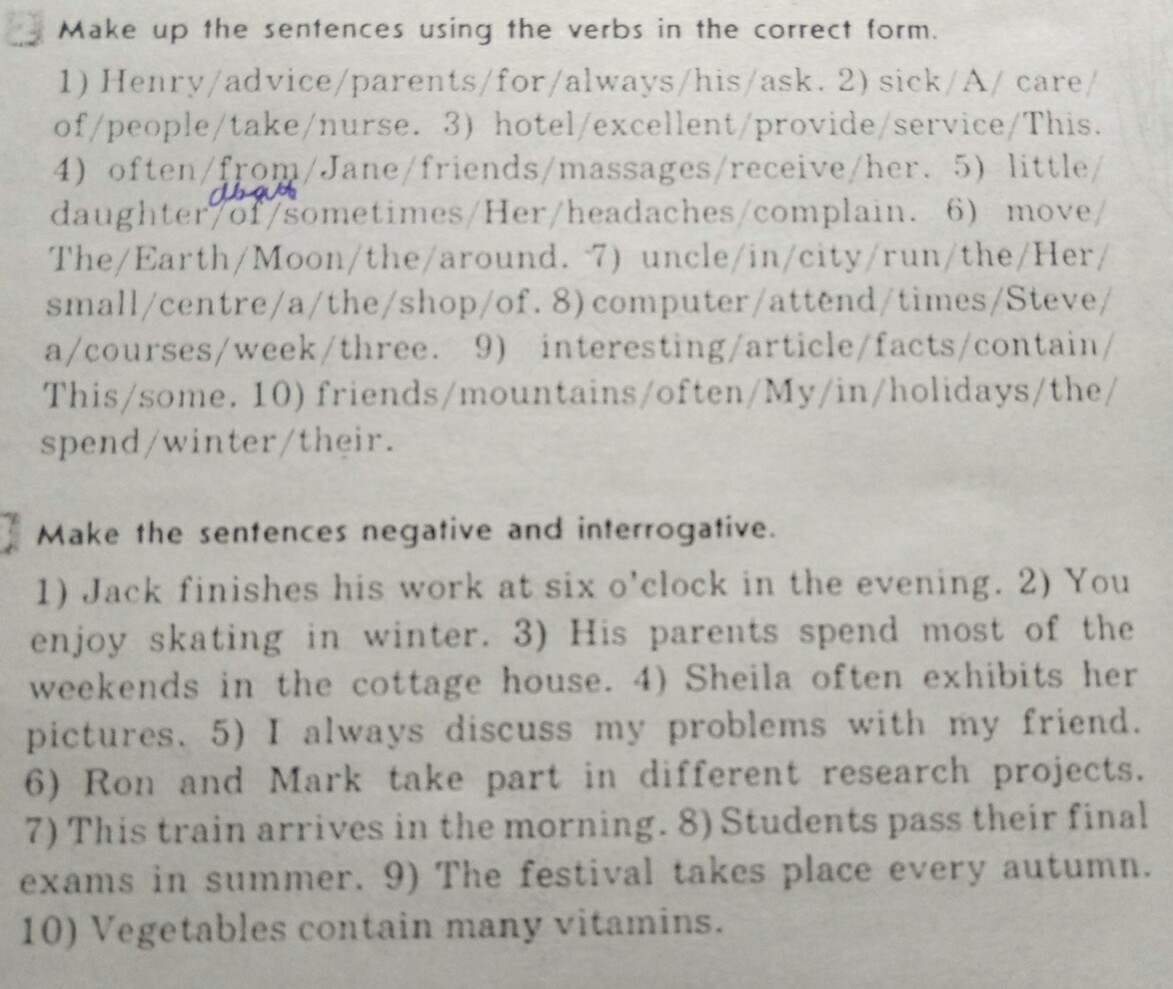 1 Jack doesn't finish his work at six o'clock in the evening.
