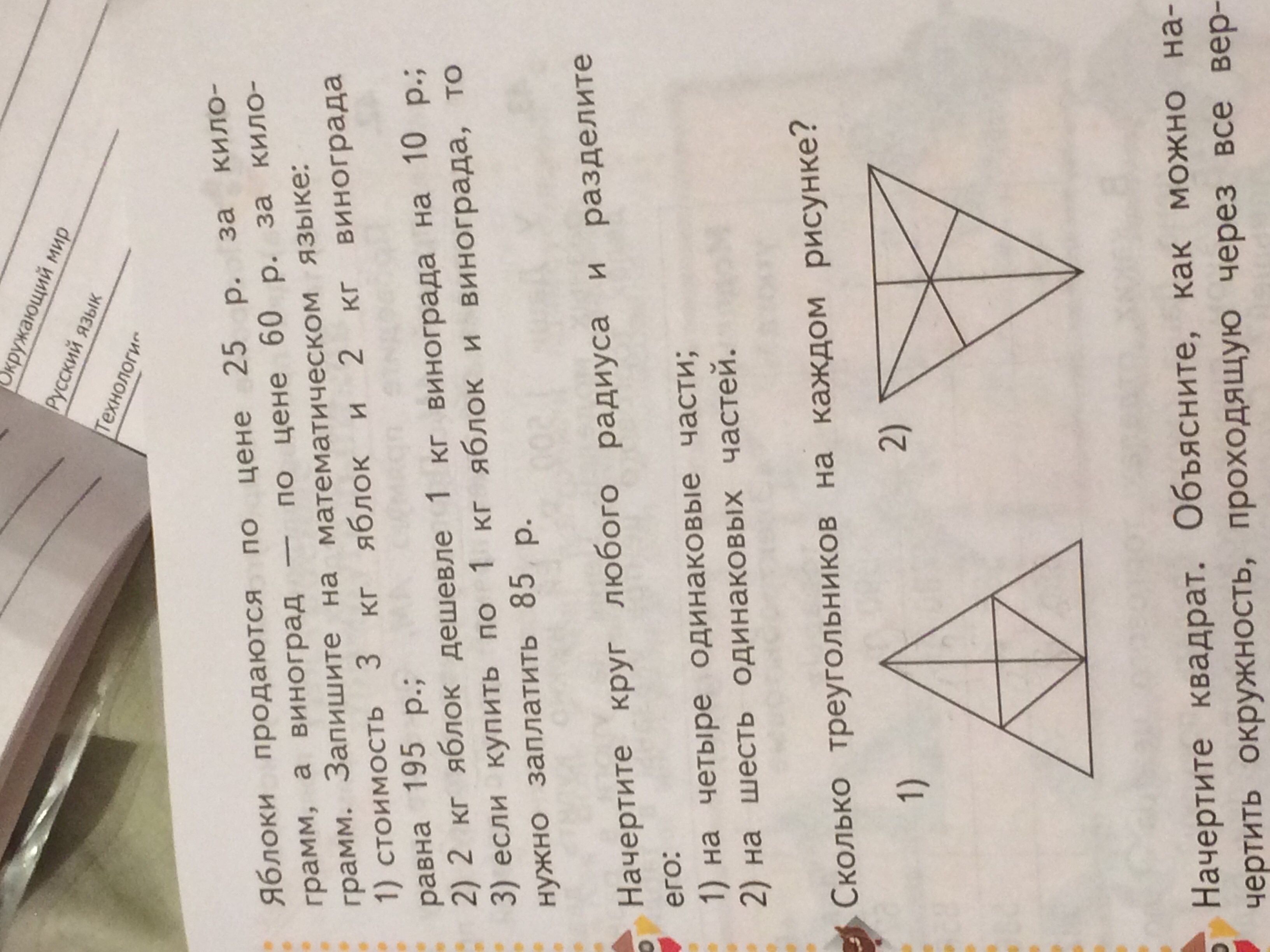 3кг. яб.+2кг винограда = 195 руб. треугольников на каждом треугольнике 7
