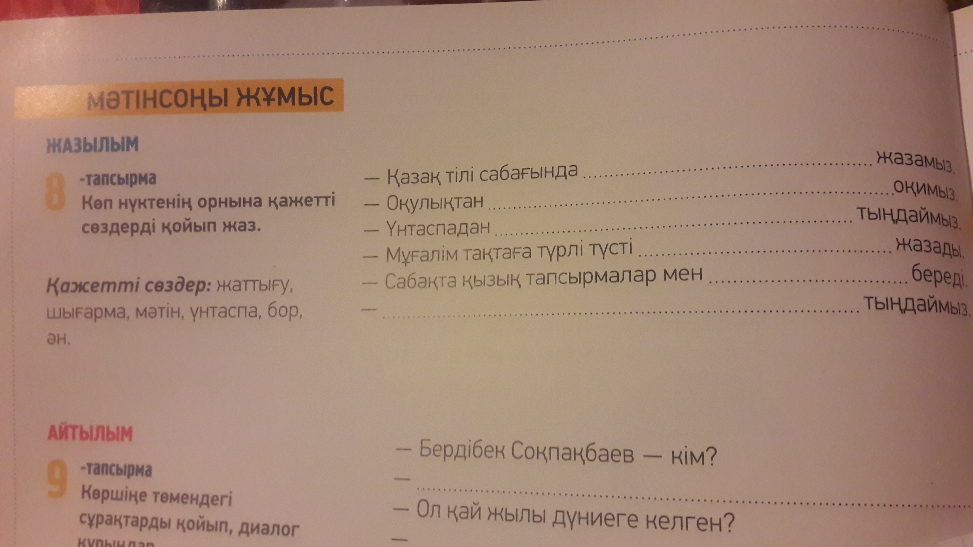 Қазақ тілі сабағында жаттығу жазамыз.