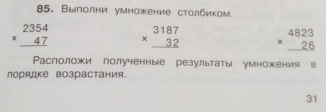 2354*47=110638 3187*32=101984 4823*26=125398
