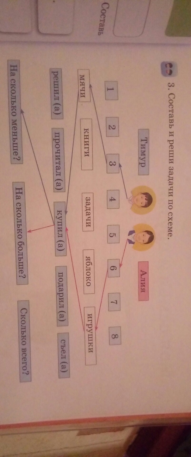 Тимур купил 3 мяча а Алия купила 6 игрушек. На сколько больше игрушек купила Алия чем Тимур