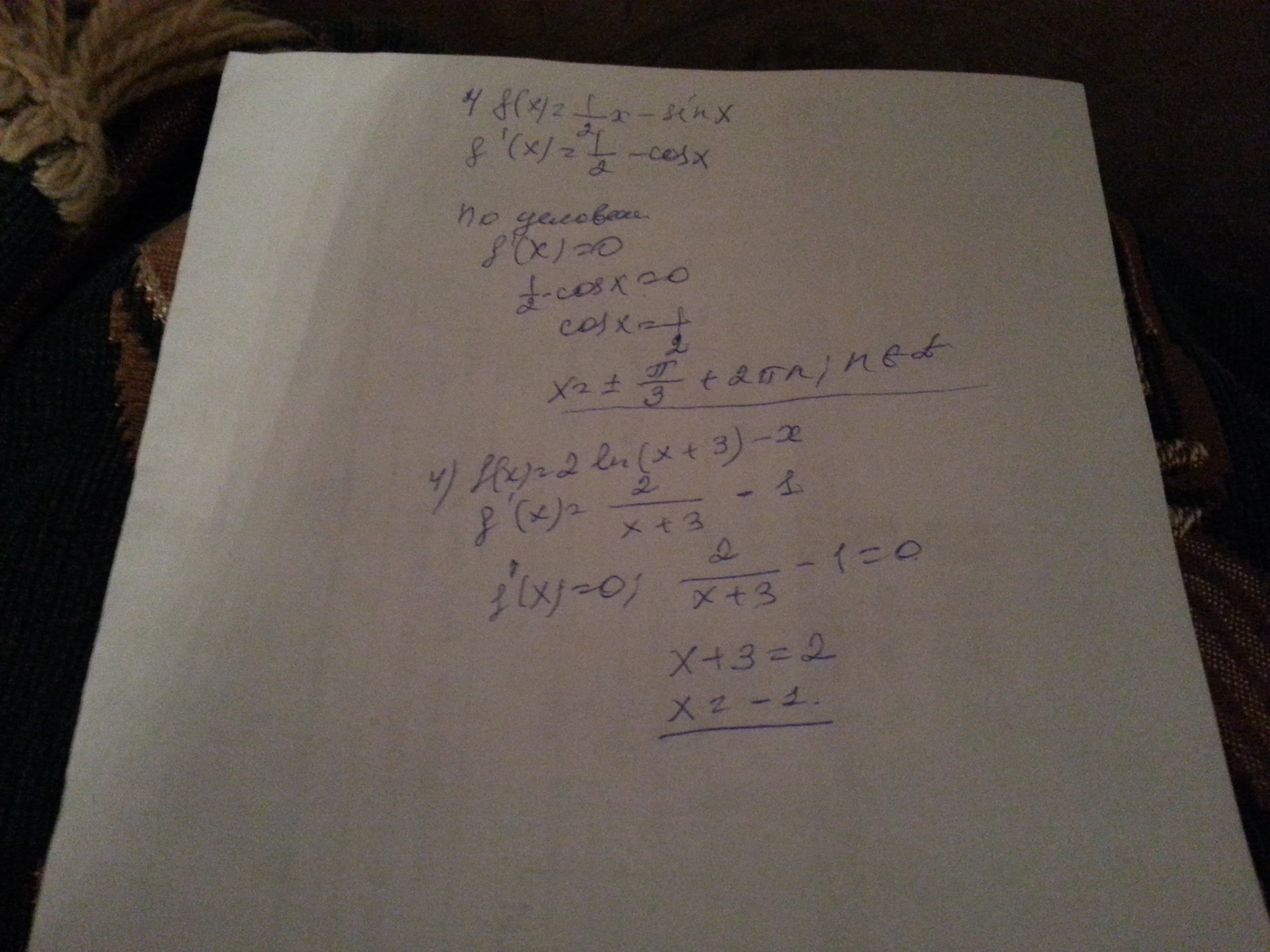 Найти значения x,при которых значения производной функций f(x) равно 0, если: номера 2 и 4