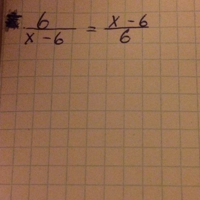 по свойству пропорции: (х-6)*(х-6)=6*6