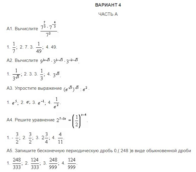 в заданиях A1,A2,A3,A4 используем свойства степени: