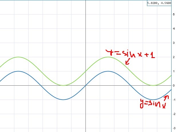 Постройте сначала функцию y=sin x и затем параллельно поднять вверх на 1 единицы.
