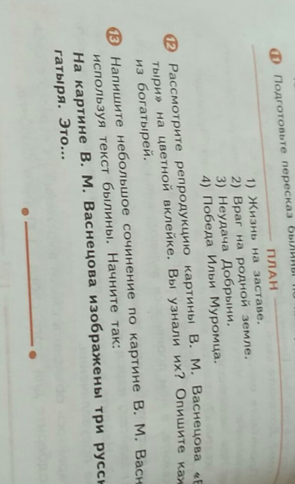 На картине В.М.Васнецова изображены три русских богатыря.Это защитники земли русской-Алёша Попович,Илья Муромец и Добрыня Никитич.Стоят они и смотрят:не напал ли враг на русскую землю?А не кто не обижает ли наш народ?