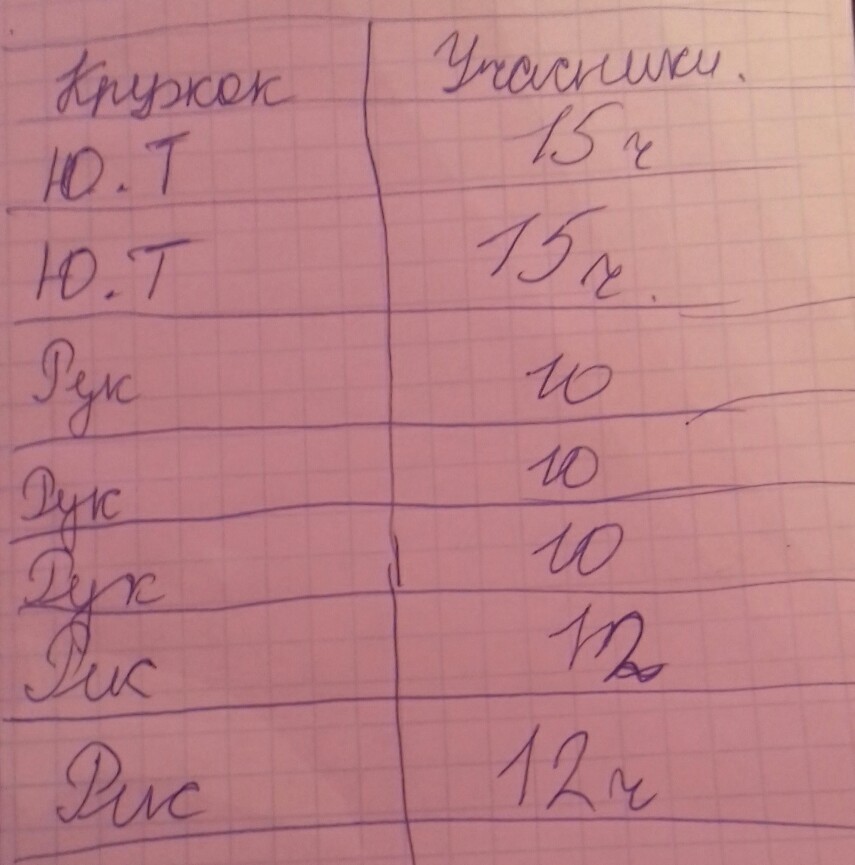 15×2+10×3=60(чел) Ю.Т + рукоделие