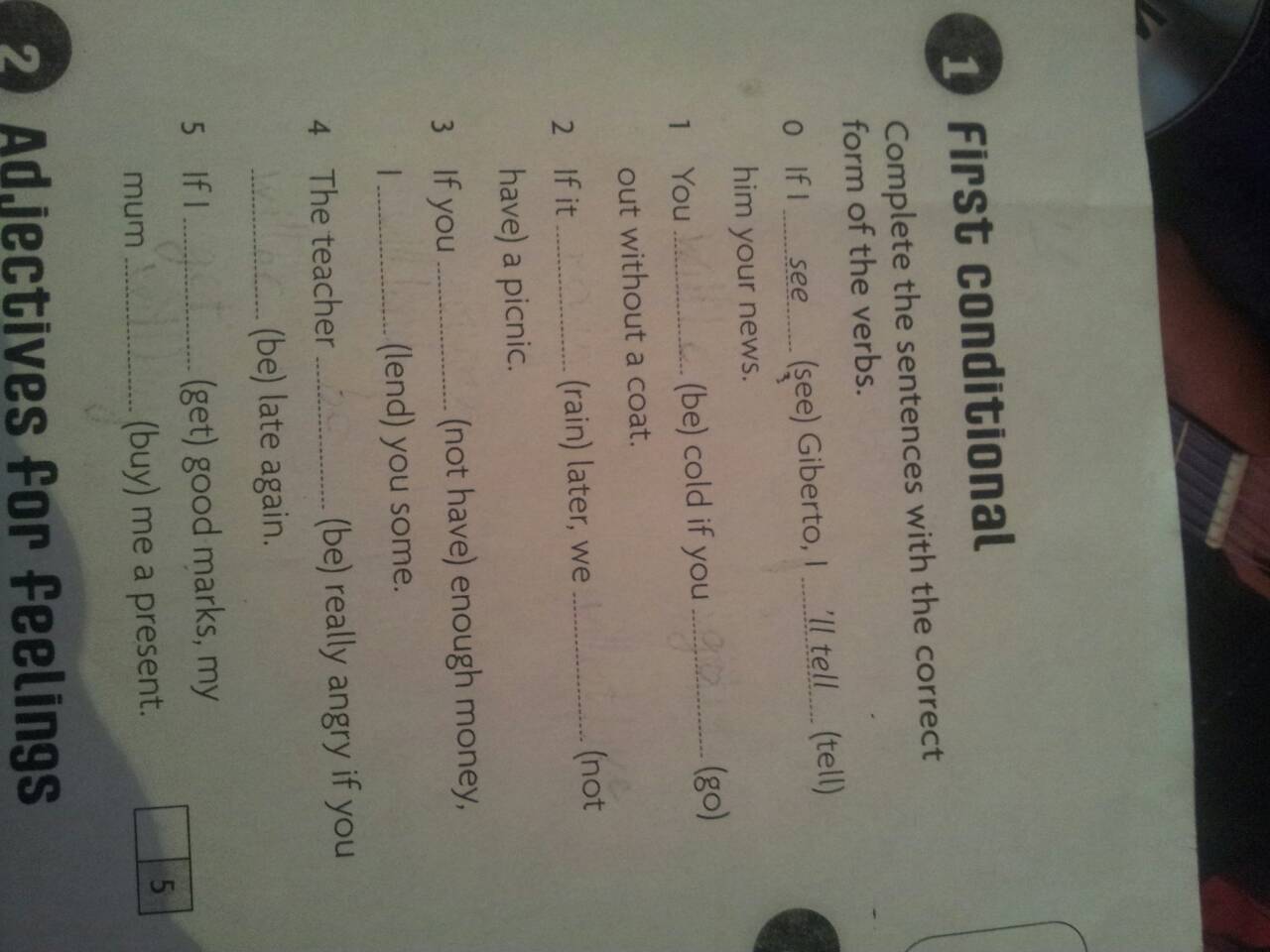 1 you will be cold if you go out without a coat 2 if it rain later we will not have a picnic 3 if you not have enought money i will lend you some