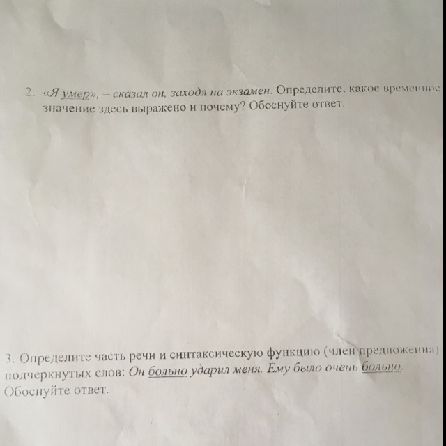 я умер - глагол прошедшего времени . (что сделал ? умер .) больно обстоятельство (как ? больно .)