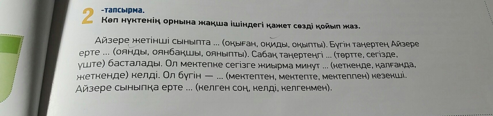 1 окиды. 2 ояныпты. 3 сегизде. 4 калганда. 5 мектепте 6 келди