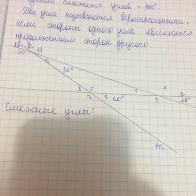 Сме́жные углы́ — это пара углов с общей вершиной и одной общей стороной. Таким образом, вместе смежные углы составляют развёрнутый угол. То есть, величина угла, являющимся смежным для угла величиной α градусов, будет (180 - α) градусов.Kn смежный