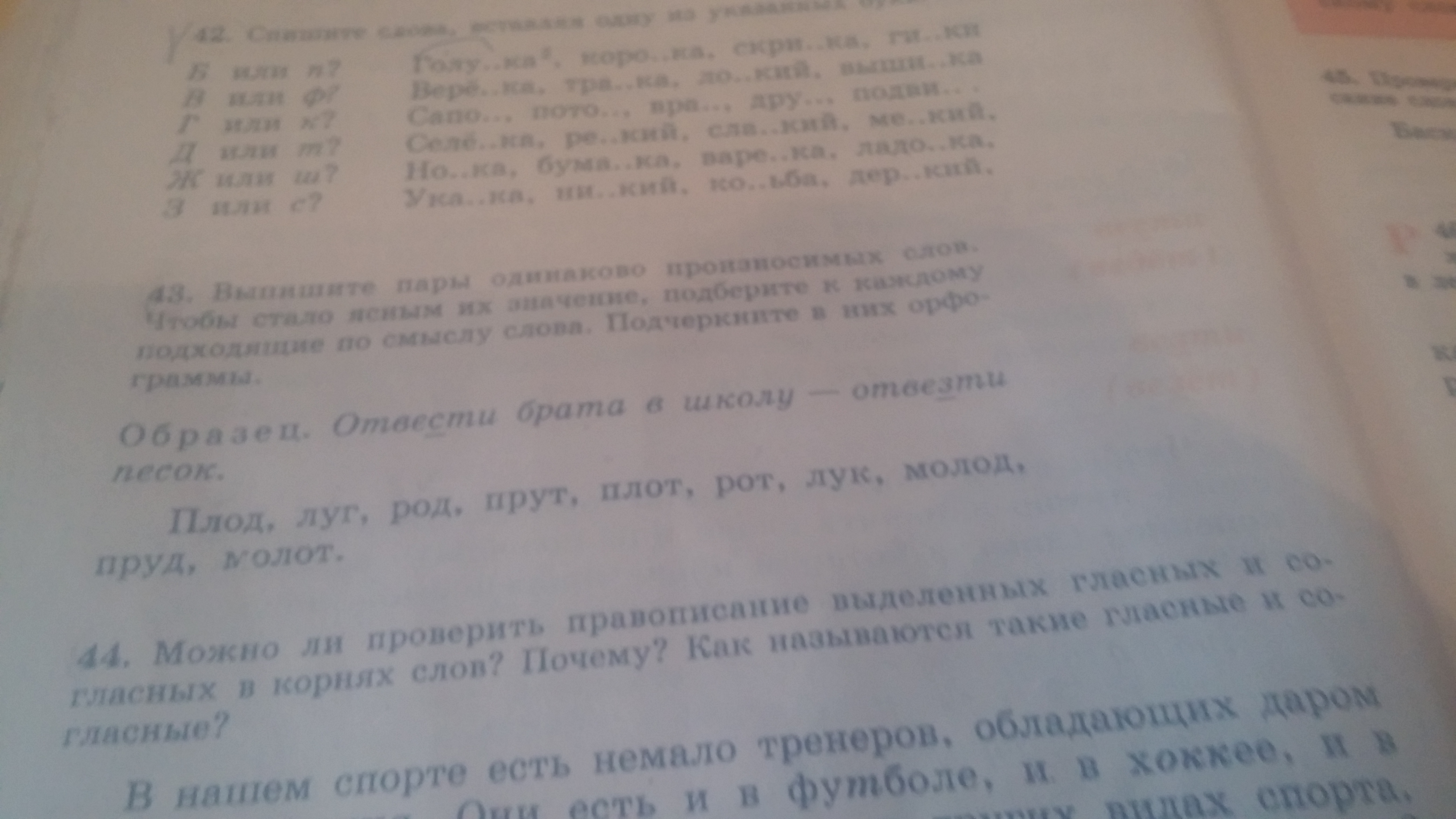 Сладкий плод - деревянный плот, женский род - раскрыть рот, зеленеющий луг - горький лук, длинный прут - глубокий пруд, слишком молод - железный молот