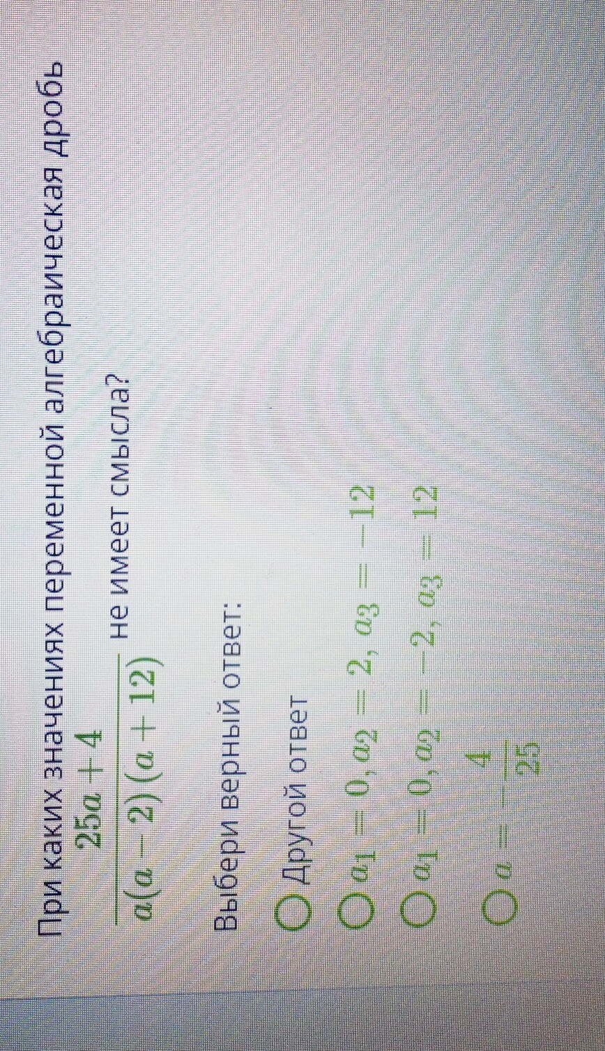 Алгебраическая дробь не имеет значения, когда знаменатель равен нулю