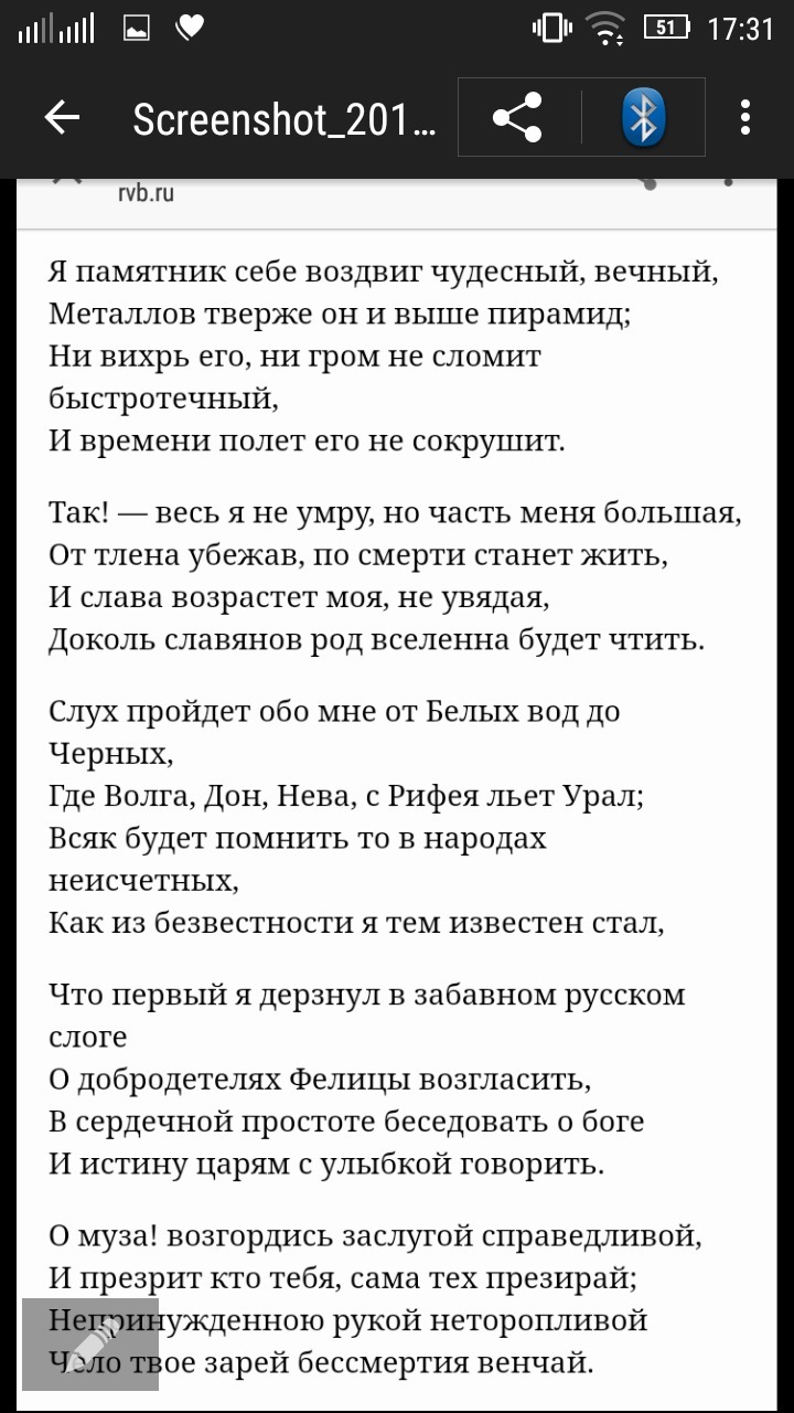 Высокая простота лексического ряда, ямб как нельзя лучше воплощают спокойный, уверенный, далекий от мирской суеты ход размышлений.