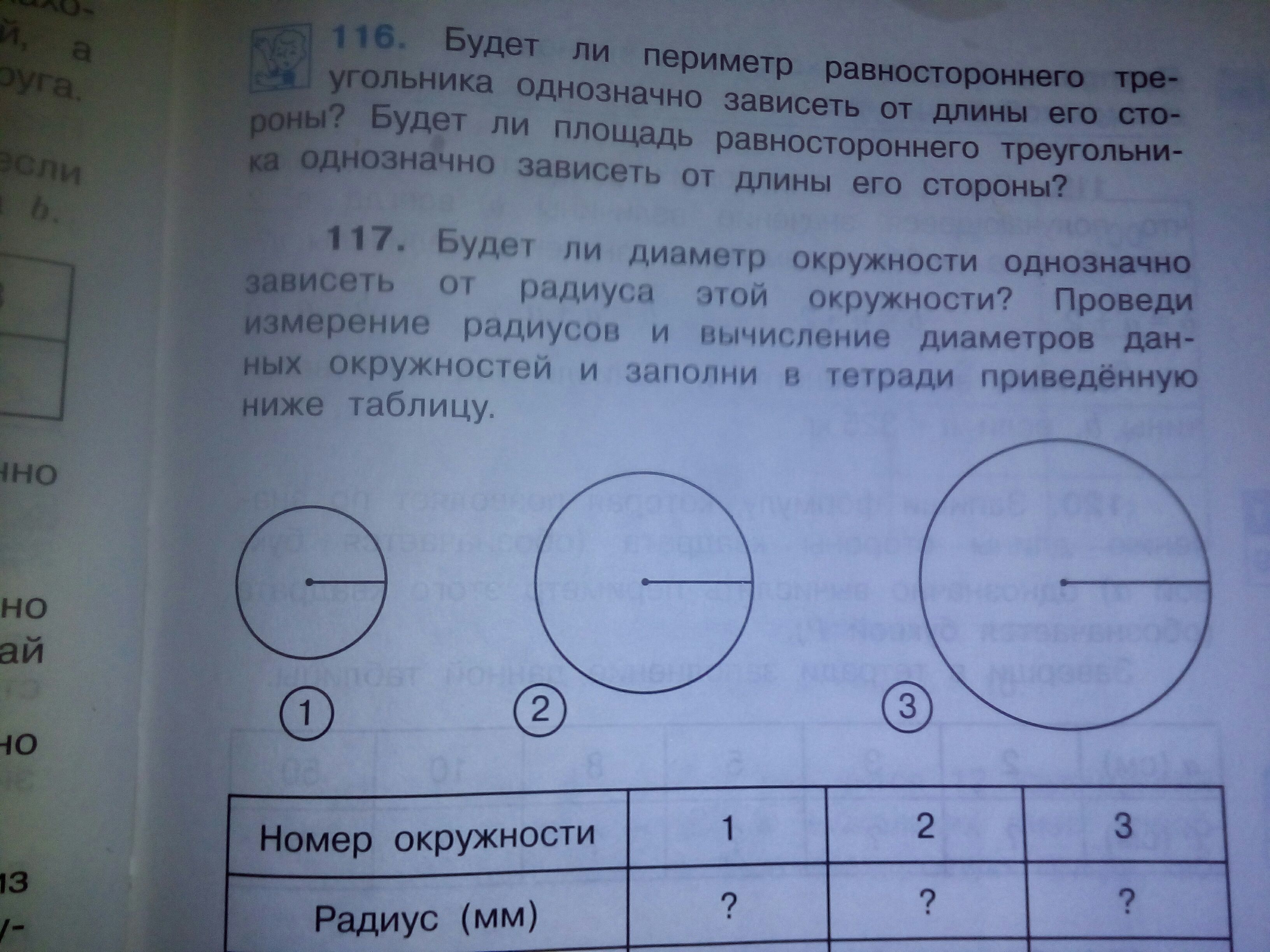 Еще раз напомню, чтобы найти диаметр, нужно радиус умножить на 2 и чтобы найти радиус, нужно диаметр разделить на 2. Не забудь, что в таблицу нужно записать не то, что я привел, а ТВОИ измерения.