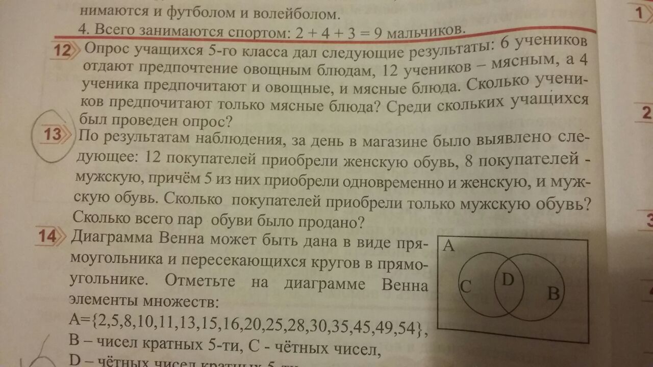 1) 8-5=3 - люди, которые приобрели только мужскую обувь2) 12+8=20 - всего пар обуви продали