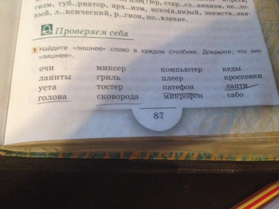 В 4-ом столбике лишнее слово лапти- устаревшее