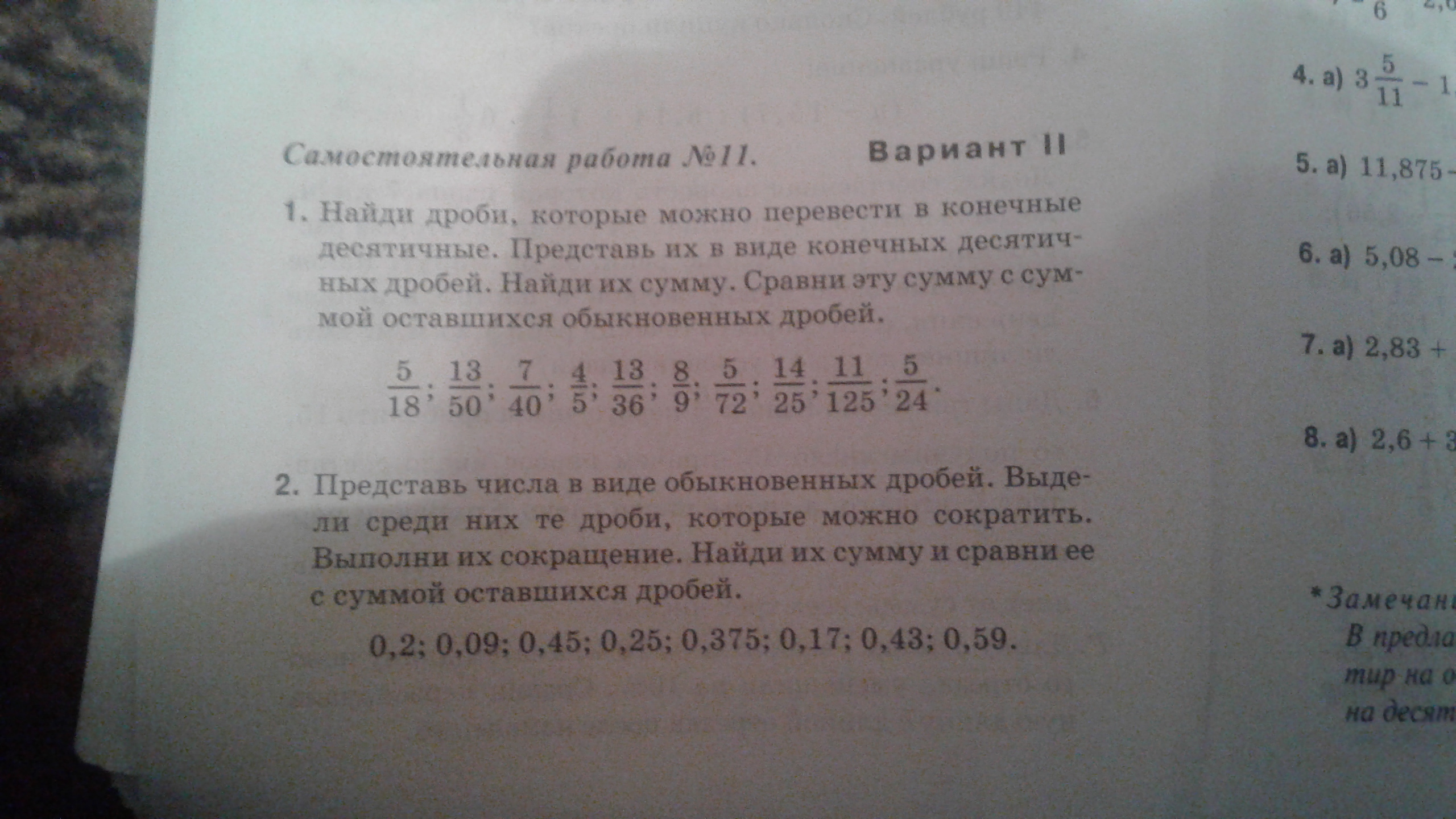 Обыкновенные дроби: 5/18 , 13/36 , 8/9 , 5/72 , 5/24