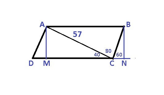диагональ параллелограмма равная 57 мм образует со сторонами углы равные 40 и 80 найдите меньшую сторону параллелограмма