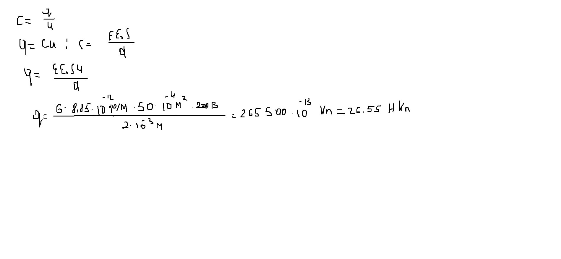 Электроемкость это отношение заряда на напряжение. Выражая заряд вместо С подставляем электроемкость плоского конденсатора