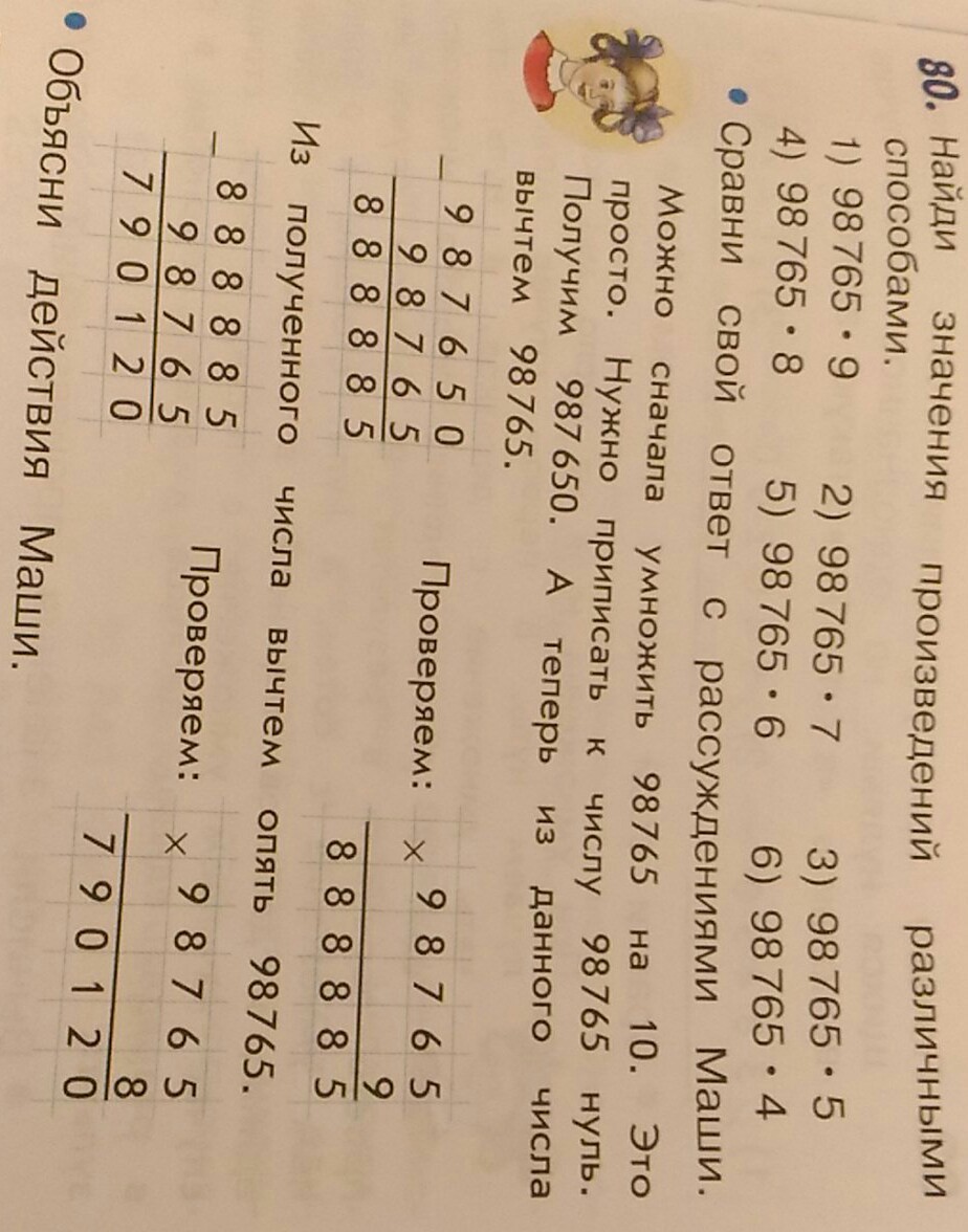 Сначала Маша умножила на 10 само число, а потом вычитая его из предыдущего ответа выполнила умножения данного числа на 9, 8 , и т.д.