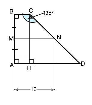 MN- средняя линия трап abcd, MN=18см , угол BCD=135° , AB перпендикулярно AD BC:AD=1:8. Найти: AB